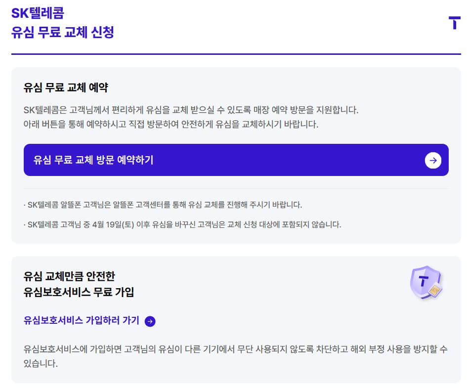 즉, SKT 유심 무상 교체 신청은 예외 없이 모든 고객이 해당됩니다.
