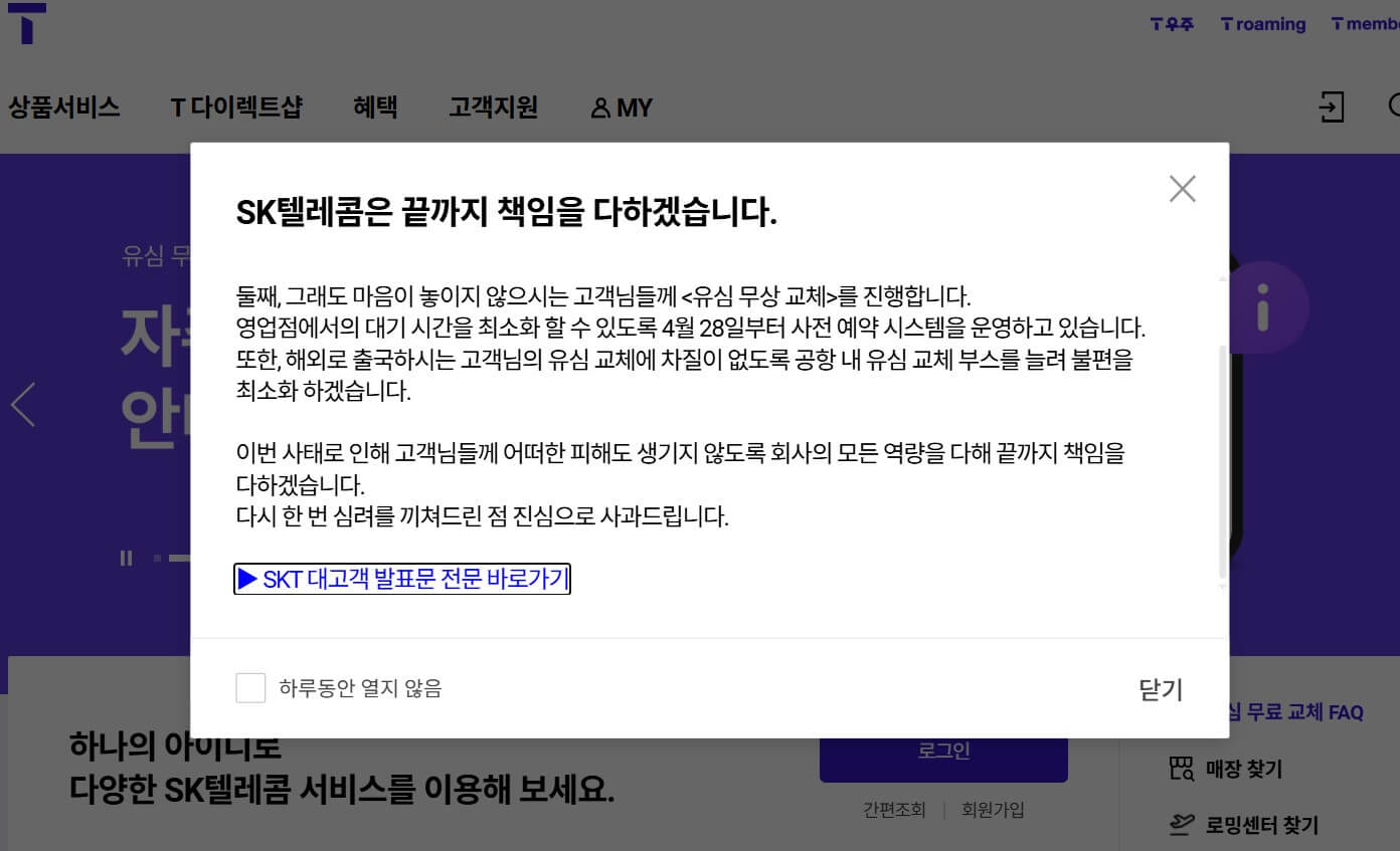 SKT 유심 무상 교체 보상 정책