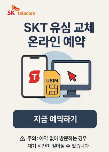 특히 사전 예약하면 대기 시간을 크게 줄일 수 있어 빠르게 SKT 유심 무상 교체 신청이 가능합니다.