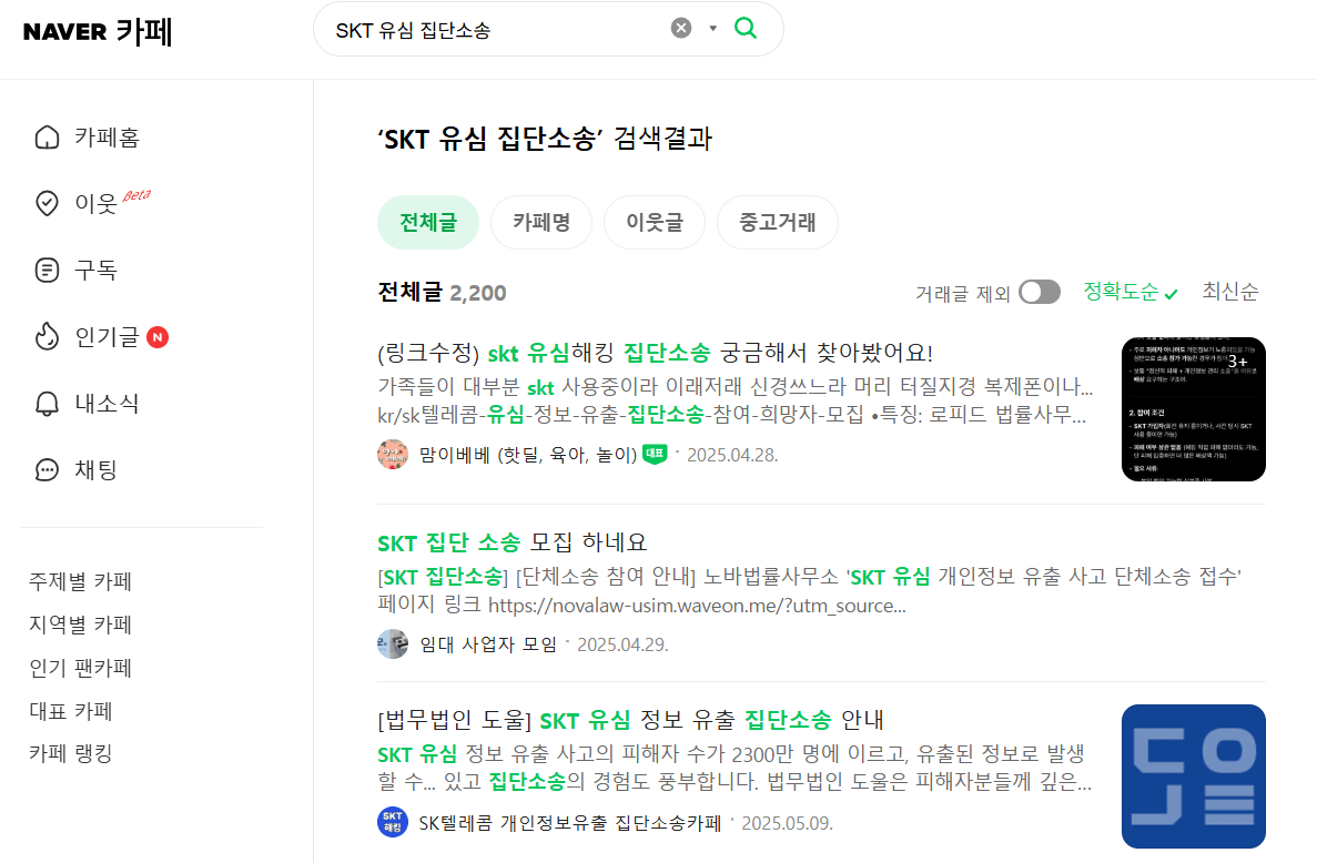 - ✅ 피해자 커뮤니티로서 SKT 집단소송카페 참여
